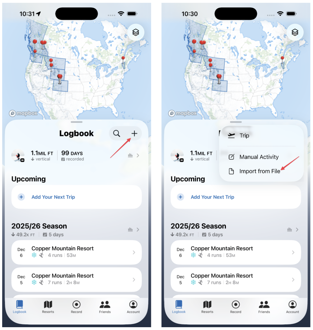 Along with being able to use Slopes to record your days on the mountain, you can import data from other devices and apps to keep your entire history in one place. Slopes supports the common GPX file-format, and some app-specific formats too.