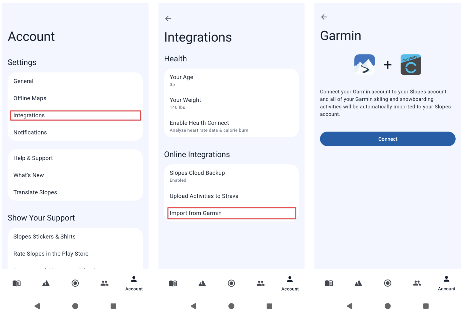 If you record your days skiing and snowboarding with a Garmin watch then you can enable Slopes's integration with Garmin to get that data added to your Logbook. Once set up, not only will future recordings automatically sync to Slopes, but after completing the one-time authorization in your Slopes account, we've made sure the last 5 years of your Garmin snow history will be imported (ignoring any duplicates of data already in Slopes). Note that if you don't already have one, you will need to set up a Slopes account for the integration to work.